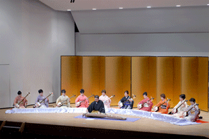 1990年、八島先生の出身地である富山市で、流派を超えたユニークな音楽道場として発足し、月に1回の指導を受けてきました。会員数は現在15名で1992年より8回の演奏会を重ねてきました。2000年4月には富山県教育文化会館で10周年記念演奏会を開催し成功を収めました。また2003年9月には沢井一恵先生、占部三竜先生と共に、外務省・国際交流基金による北欧コンサートツアーに参加させていただき、それが縁で「福山糸竹の会」とも交流するようになりました。これからもより研鑽を積み意欲的に活動していきたいと思っています。(川上厚子)